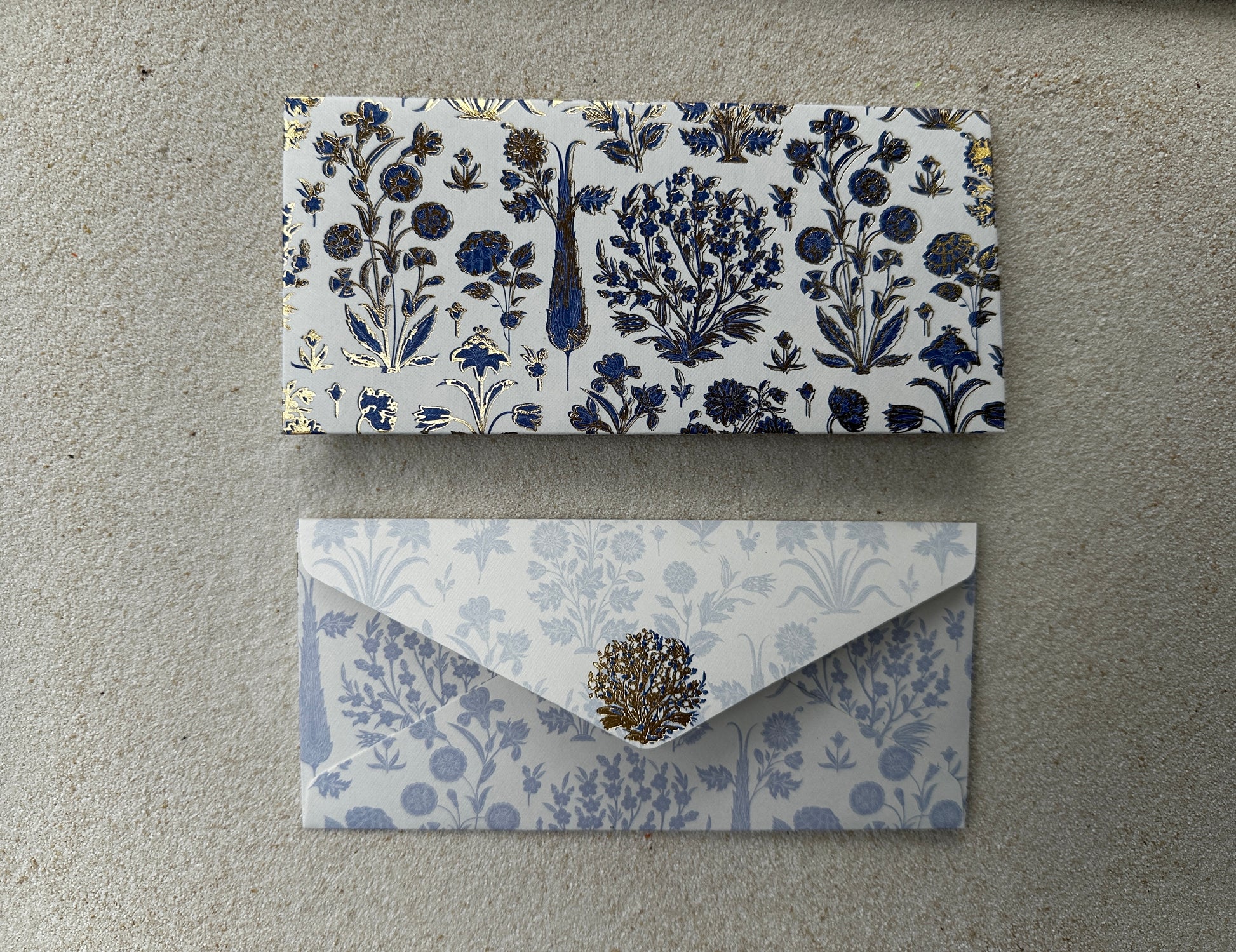 Our Handcrafted envelopes combine tradition with modern elegance. Ideal for weddings, festive celebrations, and gift-giving, our envelopes can be personalized in multiple languages, ensuring they convey warmth and thoughtfulness. Each envelope reflects our commitment to craftsmanship and the art of giving- a perfect touch for any meaningful occasion.